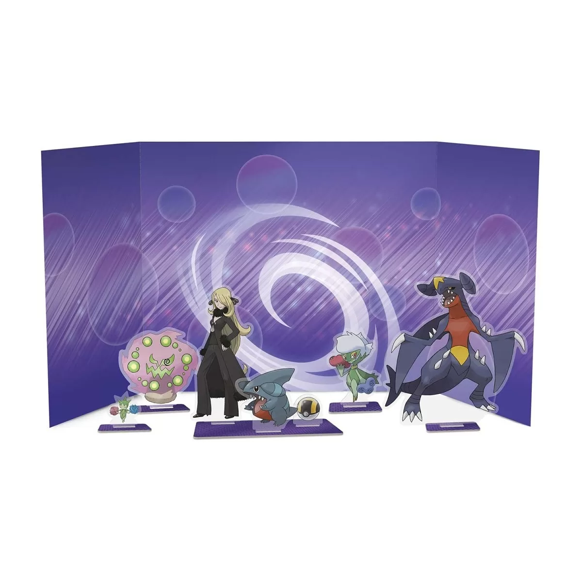 ¡Cynthia y Garchomp demuestran la fuerza de una Campeona! Cynthia, la Campeona de la región de Sinnoh, es una de las Entrenadoras Pokémon más poderosas del mundo, ¡y su Garchomp ha estado a su lado desde el principio! Descubre el poder de su amistad en esta colección con la carta promo holográfica de Garchomp ex de Cynthia, cuyos ataques causarán un daño devastador y te permitirán robar cartas. Además, adentro encontrarás cartas holográficas de Gible de Cynthia y Gabite de Cynthia, 1 calcomanía genial, 1 set de figuras con fondo y muchos más Pokémon en los sobres de refuerzo. Y las figuras acrílicas muestran a más Pokémon emblemáticos de Cynthia, ¡que también podrás encontrar en Escarlata y Púrpura-Rivales Predestinados!